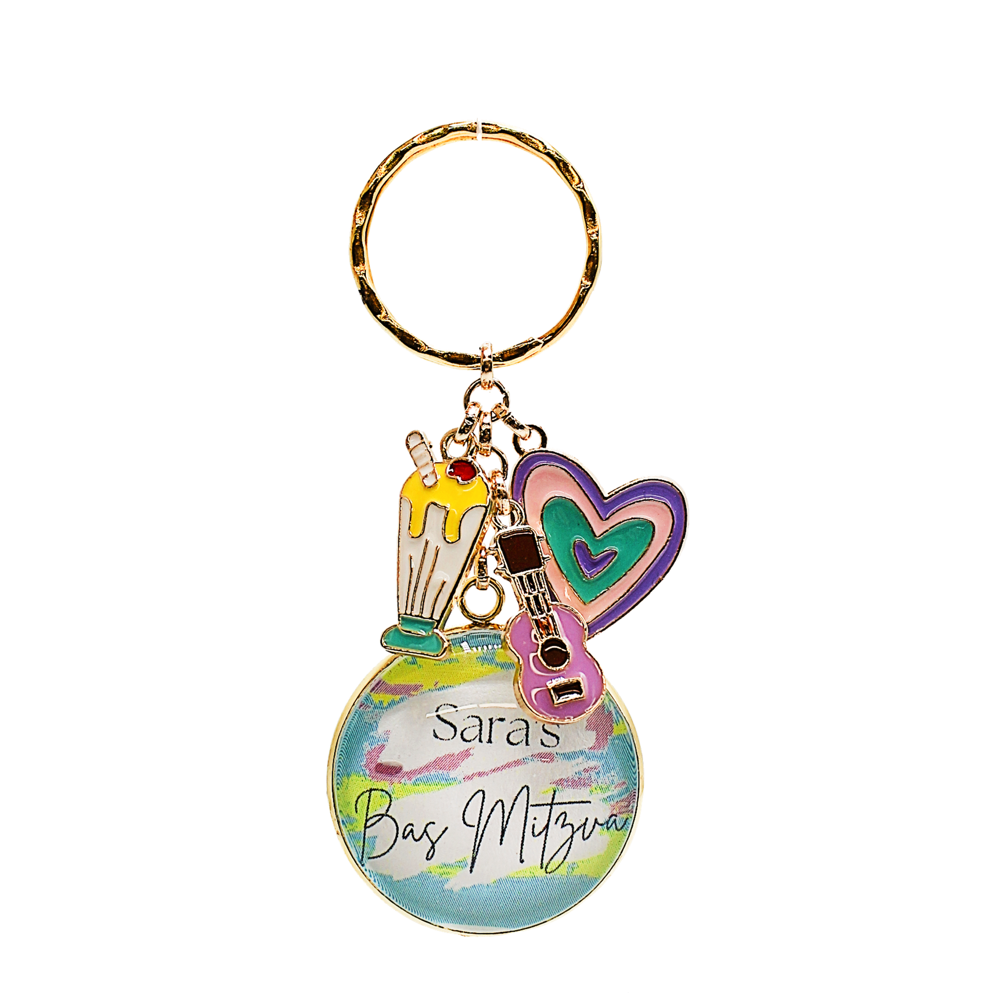 This keychain is fun and colorful, will add a pop to whatever you hook it onto, with whatever you choose to personalize it with.
