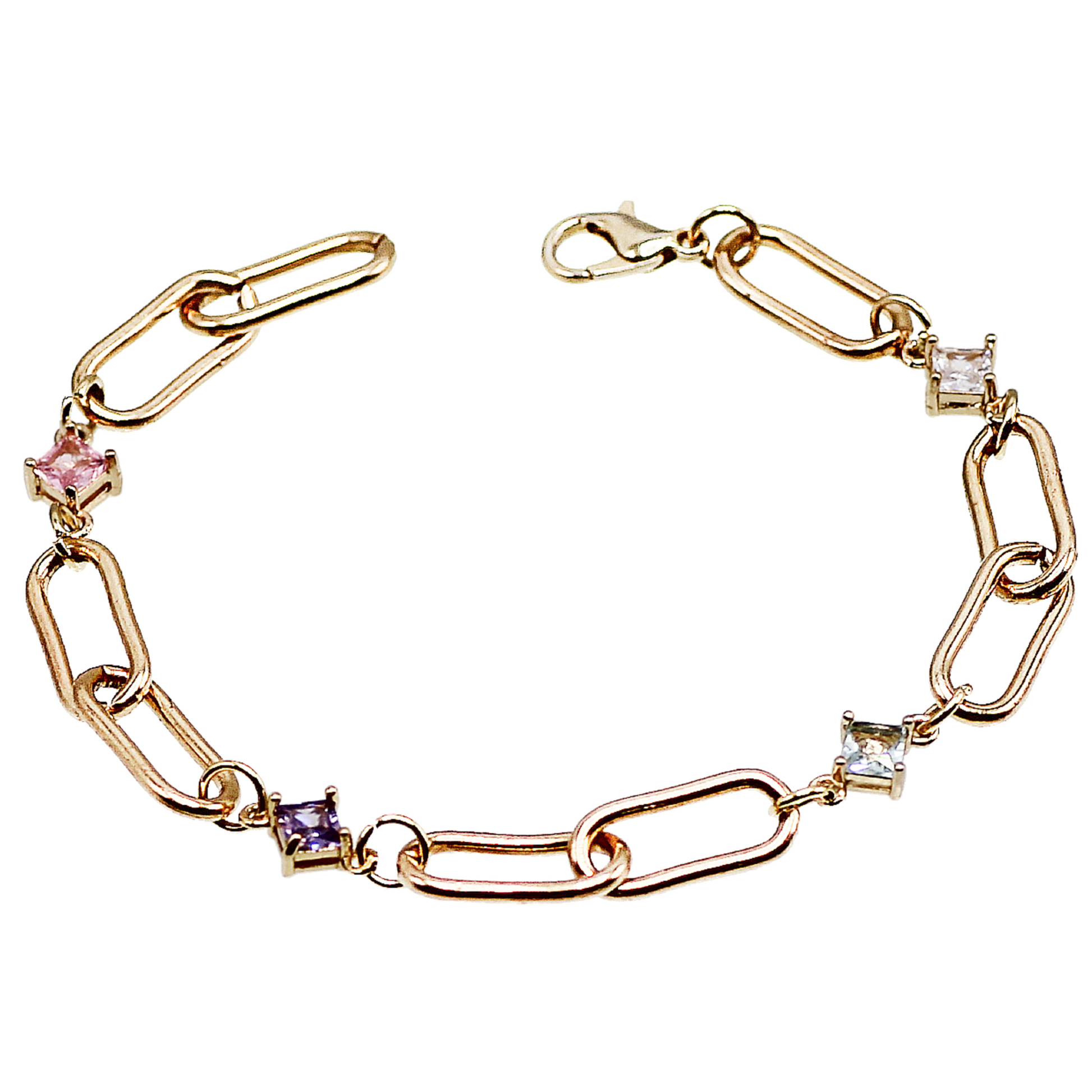 This elegant 18k gold paperclip bracelet provides a refined and sophisticated accent to any outfit.