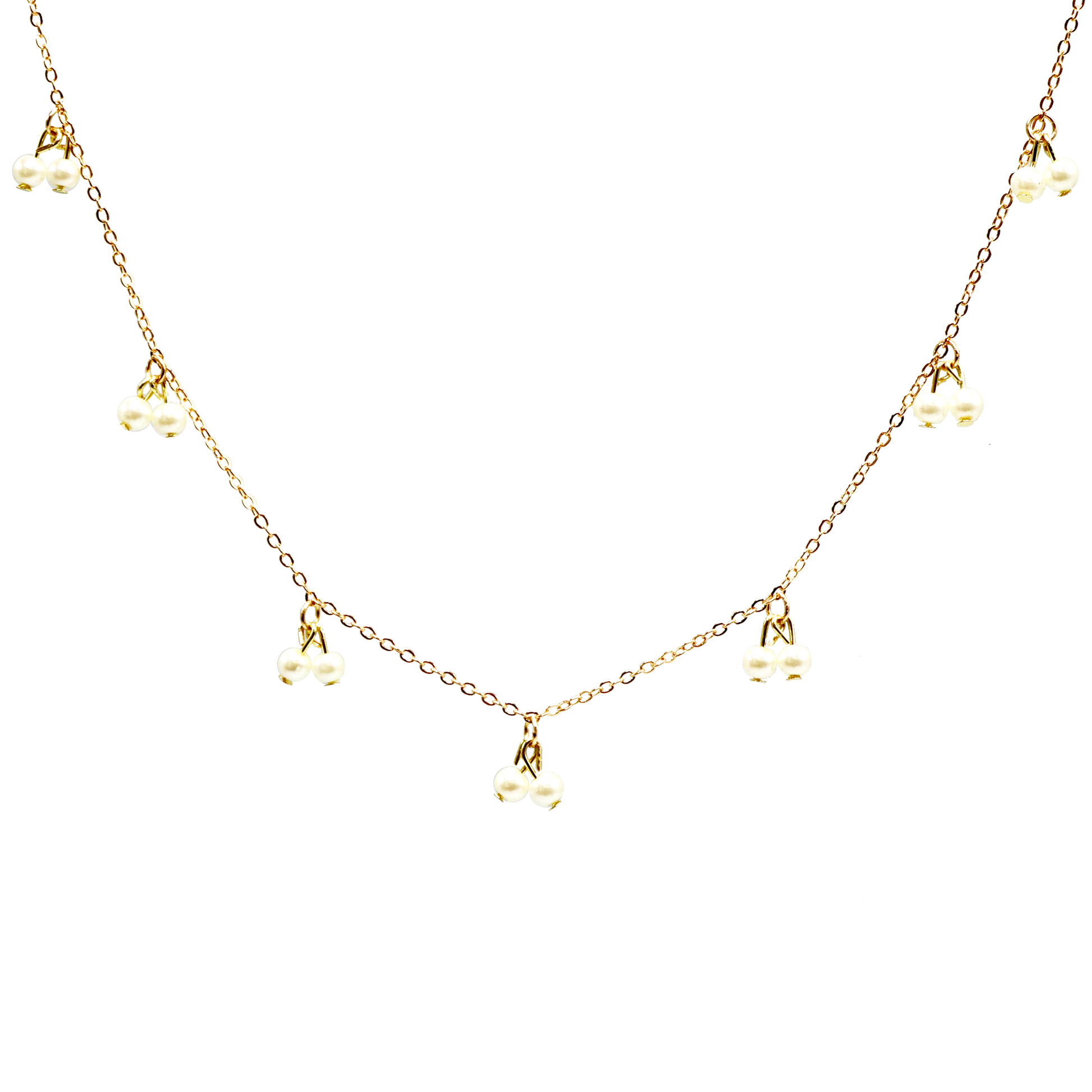 This choker is elegant and beautiful, graced with groups of pearls, on a sleek chain.
