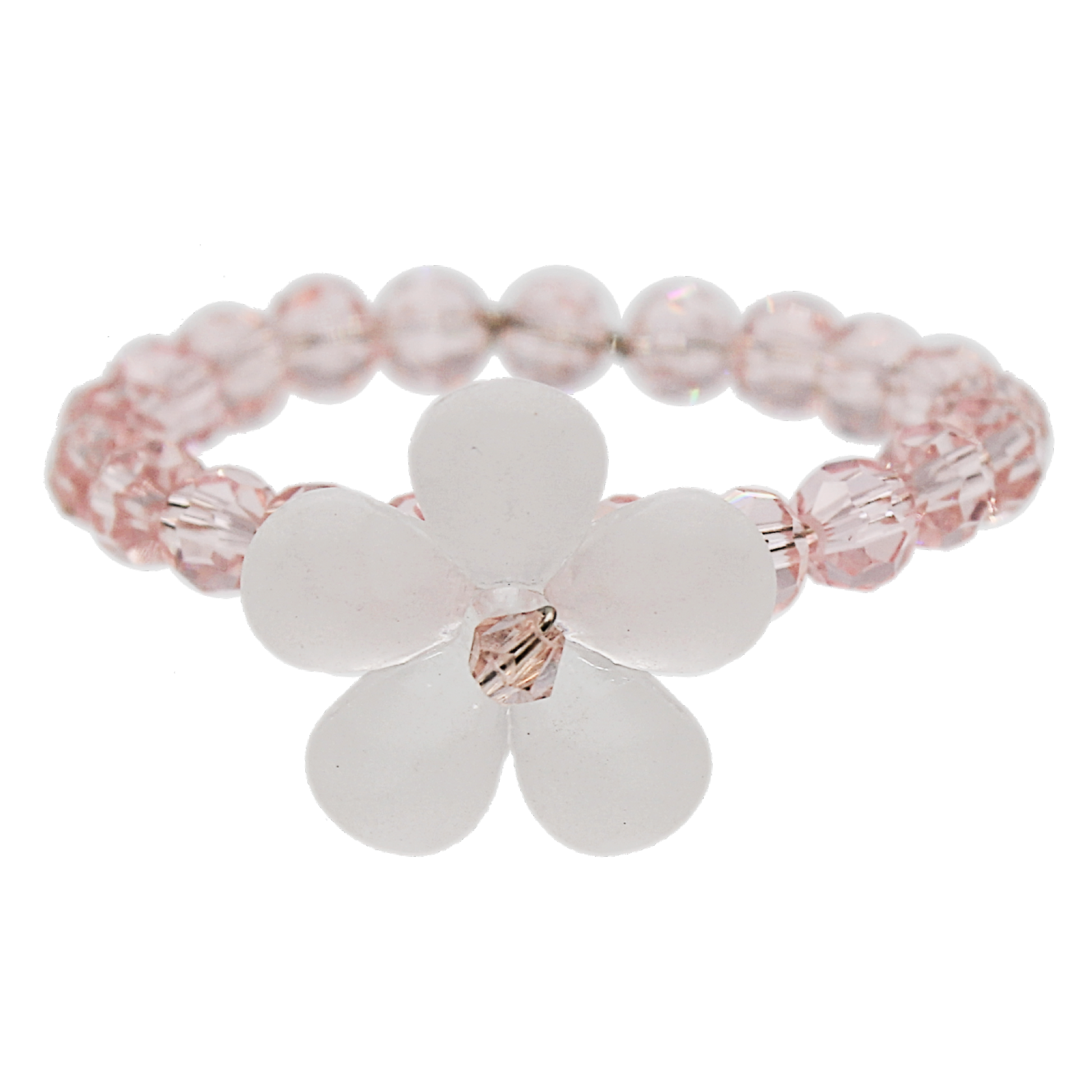 This is a delicate napkin ring with an elegant white flower graced with pink beads.